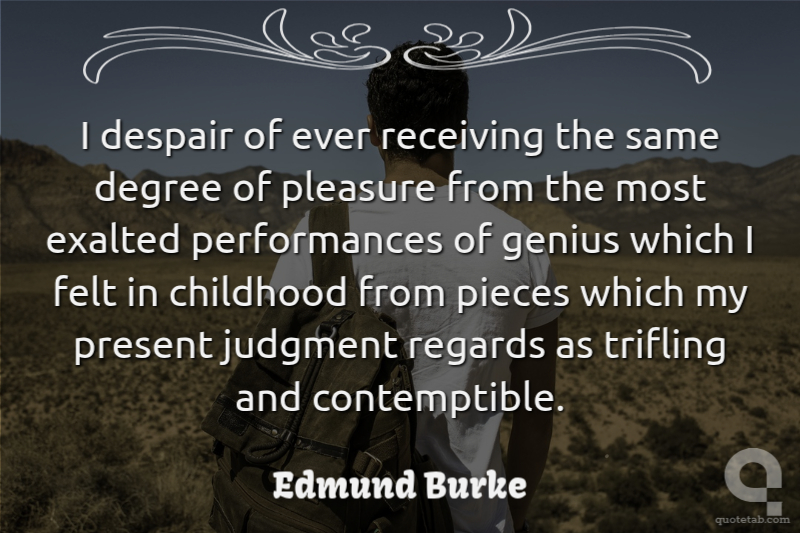 I despair of ever receiving the same degree of pleasure from the most exalted performances of genius which I felt in childhood from pieces which my present judgment regards as trifling and contemptible.