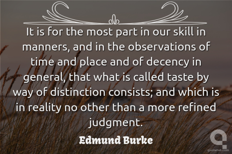 It is for the most part in our skill in manners, and in the observations of time and place and of decency in general, that what is called taste by way of distinction consists; and which is in reality no other than a more refined judgment.