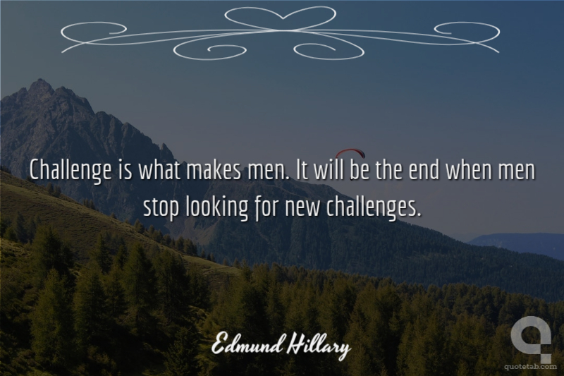 Challenge is what makes men. It will be the end when men stop looking for new challenges.