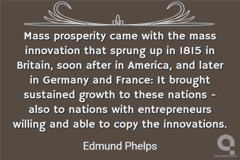 Mass prosperity came with the mass innovation that sprung up in 1815 in Britain, soon after in America, and later in Germany and France: It brought sustained growth to these nations - also to nations with entrepreneurs willing and able to copy the innovations.
