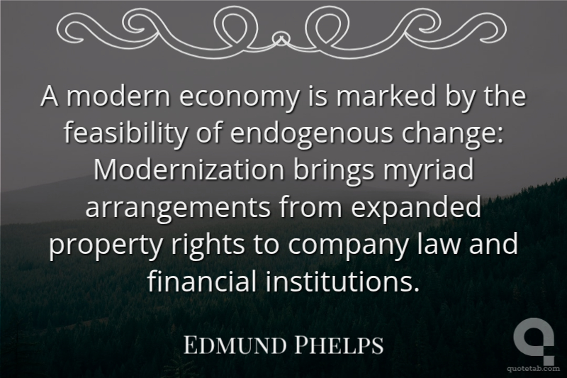 A modern economy is marked by the feasibility of endogenous change: Modernization brings myriad arrangements from expanded property rights to company law and financial institutions.
