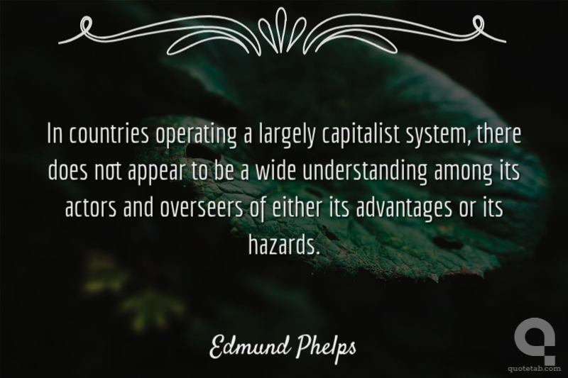In countries operating a largely capitalist system, there does not appear to be a wide understanding among its actors and overseers of either its advantages or its hazards.
