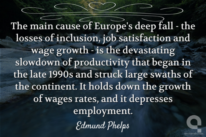 The main cause of Europe's deep fall - the losses of inclusion, job satisfaction and wage growth - is the devastating slowdown of productivity that began in the late 1990s and struck large swaths of the continent. It holds down the growth of wages rates, and it depresses employment.