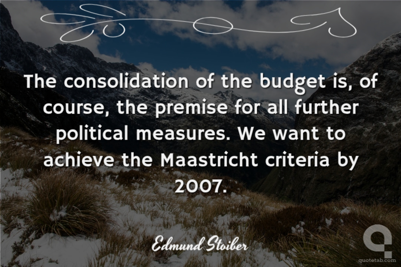 The consolidation of the budget is, of course, the premise for all further political measures. We want to achieve the Maastricht criteria by 2007.