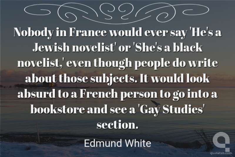 Nobody in France would ever say 'He's a Jewish novelist' or 'She's a black novelist,' even though people do write about those subjects. It would look absurd to a French person to go into a bookstore and see a 'Gay Studies' section.