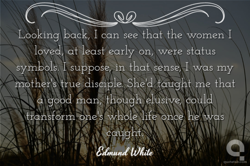Looking back, I can see that the women I loved, at least early on, were status symbols. I suppose, in that sense, I was my mother's true disciple. She'd taught me that a good man, though elusive, could transform one's whole life once he was caught.