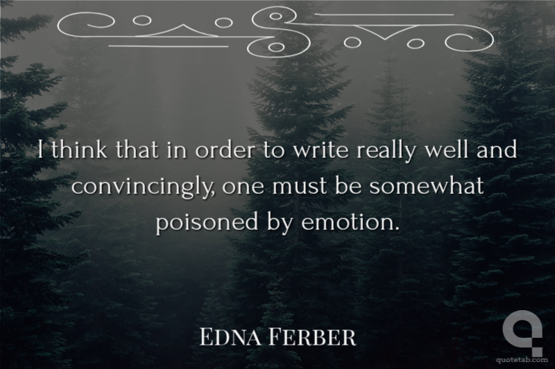 I think that in order to write really well and convincingly, one must be somewhat poisoned by emotion.