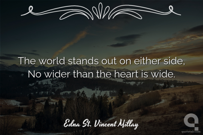 The world stands out on either side No wider than the heart is wide; Above the world is stretched the sky, No higher than the soul is high. The heart can push the sea and land Farther away on either hand; The soul can split the sky in two, And let the face of God shine through. But East and West will pinch the heart That can not keep them pushed apart; And he whose soul is flat—the sky Will cave in on him by and by.