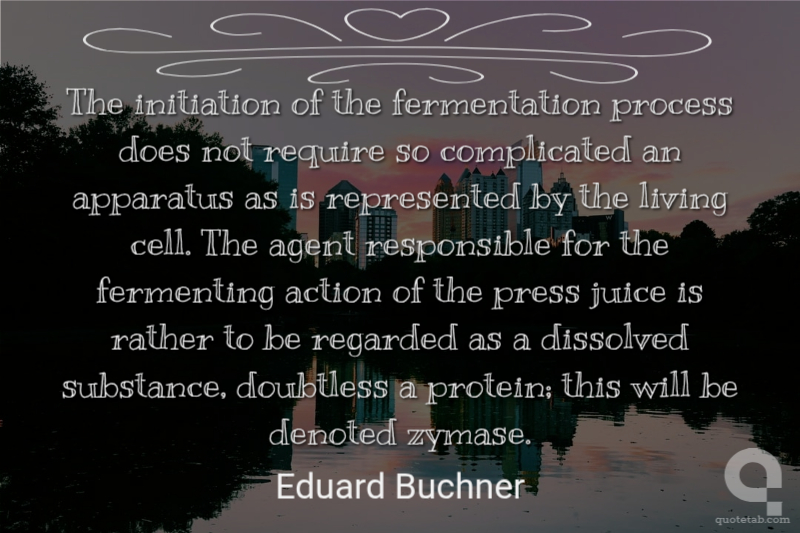The initiation of the fermentation process does not require so complicated an apparatus as is represented by the living cell. The agent responsible for the fermenting action of the press juice is rather to be regarded as a dissolved substance, doubtless a protein; this will be denoted zymase.