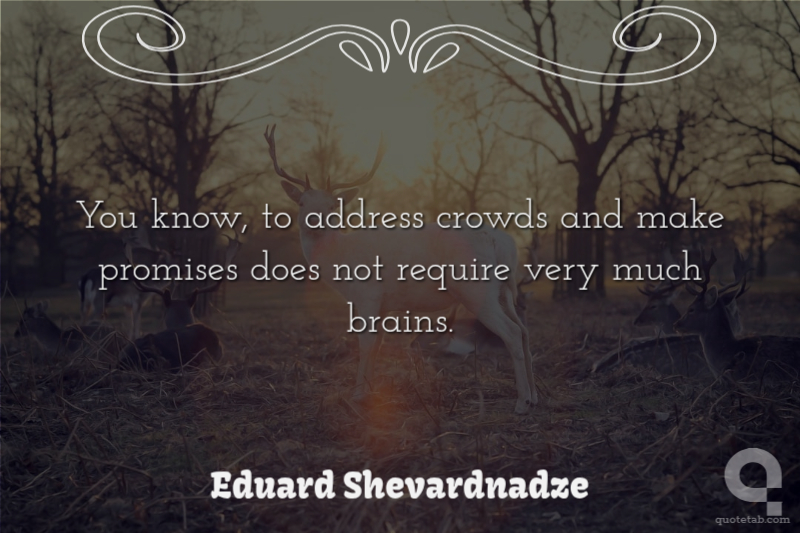 You know, to address crowds and make promises does not require very much brains.