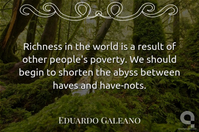 Richness in the world is a result of other people's poverty. We should begin to shorten the abyss between haves and have-nots.