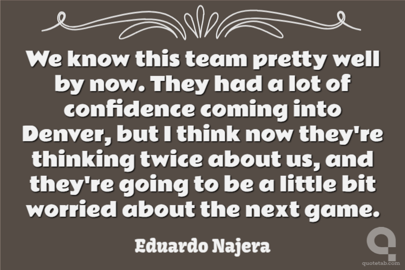 We know this team pretty well by now. They had a lot of confidence coming into Denver, but I think now they're thinking twice about us, and they're going to be a little bit worried about the next game.