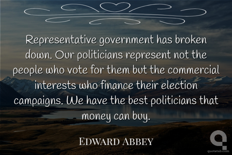 Representative government has broken down. Our politicians represent not the people who vote for them but the commercial interests who finance their election campaigns. We have the best politicians that money can buy.