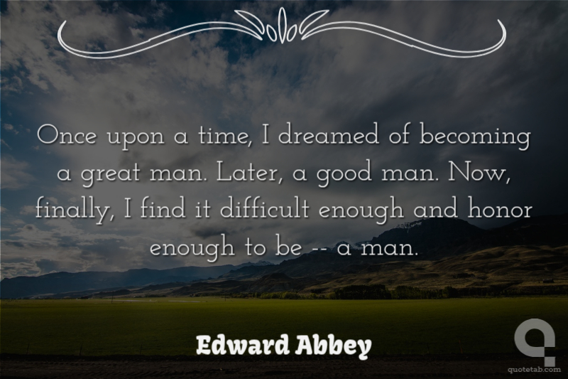 Once upon a time, I dreamed of becoming a great man. Later, a good man. Now, finally, I find it difficult enough and honor enough to be -- a man.