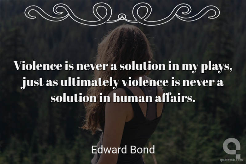 Violence is never a solution in my plays, just as ultimately violence is never a solution in human affairs.
