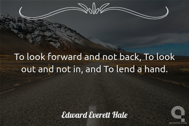 To look forward and not back, To look out and not in, and To lend a hand.