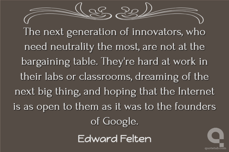 The next generation of innovators, who need neutrality the most, are not at the bargaining table. They're hard at work in their labs or classrooms, dreaming of the next big thing, and hoping that the Internet is as open to them as it was to the founders of Google.