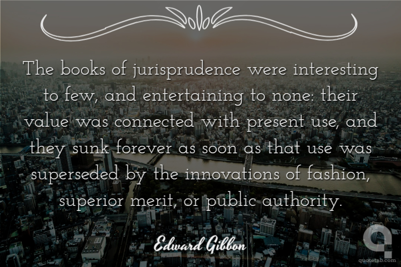The books of jurisprudence were interesting to few, and entertaining to none: their value was connected with present use, and they sunk forever as soon as that use was superseded by the innovations of fashion, superior merit, or public authority.