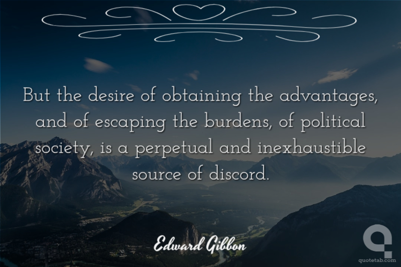 But the desire of obtaining the advantages, and of escaping the burdens, of political society, is a perpetual and inexhaustible source of discord.