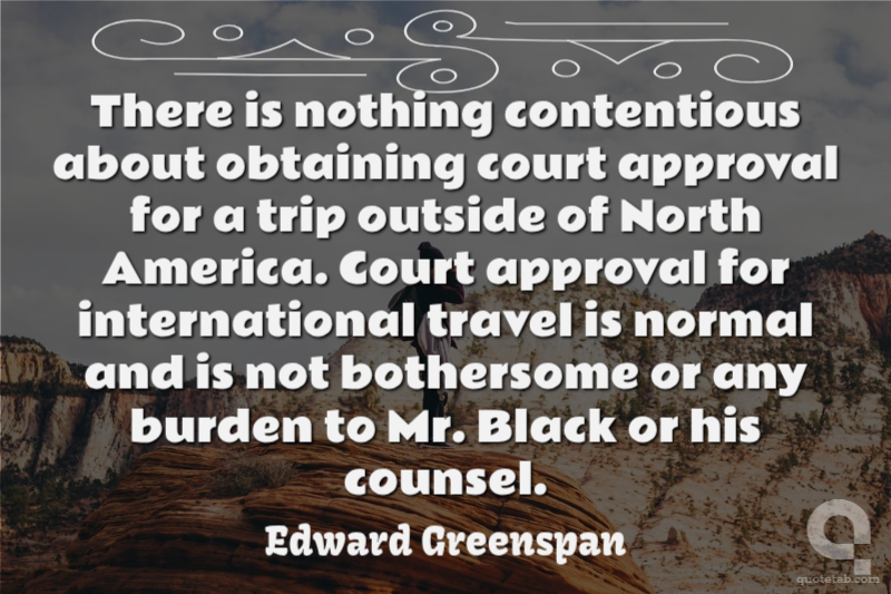 There is nothing contentious about obtaining court approval for a trip outside of North America. Court approval for international travel is normal and is not bothersome or any burden to Mr. Black or his counsel.