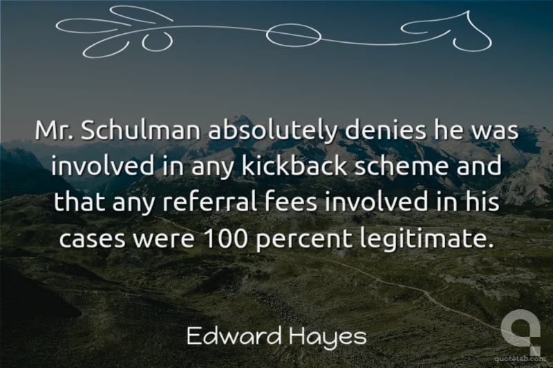 Mr. Schulman absolutely denies he was involved in any kickback scheme and that any referral fees involved in his cases were 100 percent legitimate.