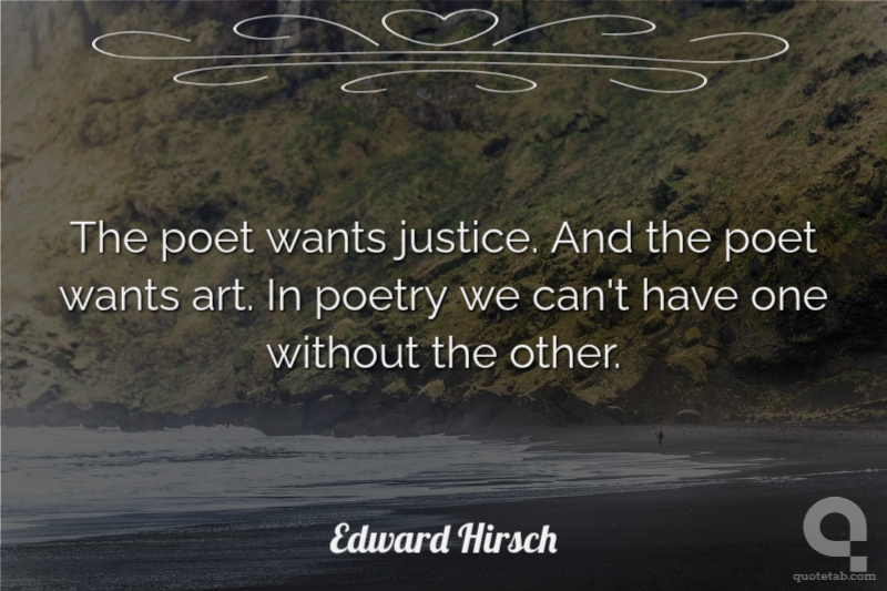 The poet wants justice. And the poet wants art. In poetry we can't have one without the other.