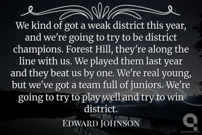 We kind of got a weak district this year, and we're going to try to be district champions. Forest Hill, they're along the line with us. We played them last year and they beat us by one. We're real young, but we've got a team full of juniors. We're going to try to play well and try to win district.
