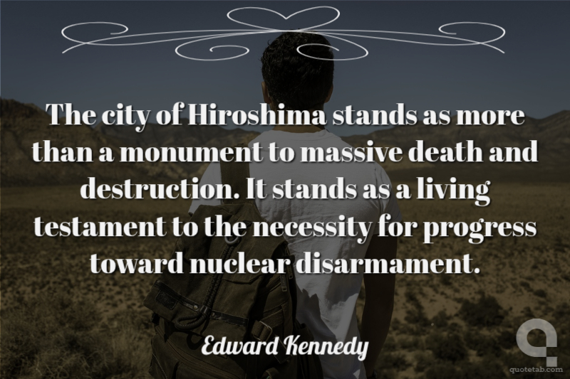The city of Hiroshima stands as more than a monument to massive death and destruction. It stands as a living testament to the necessity for progress toward nuclear disarmament.