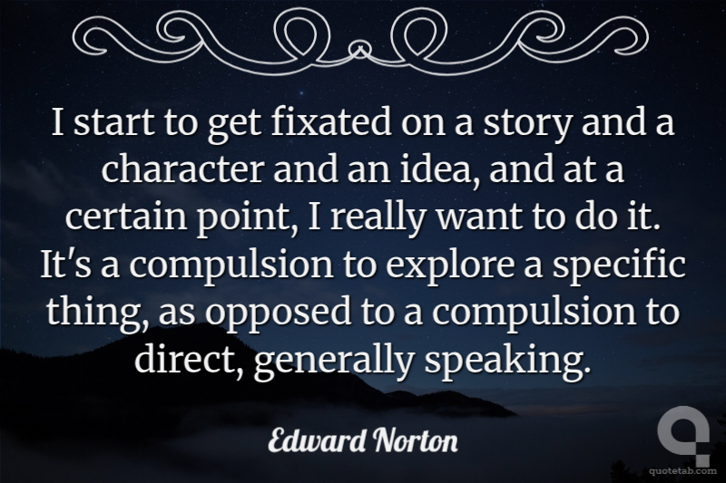 I start to get fixated on a story and a character and an idea, and at a certain point, I really want to do it. It's a compulsion to explore a specific thing, as opposed to a compulsion to direct, generally speaking.