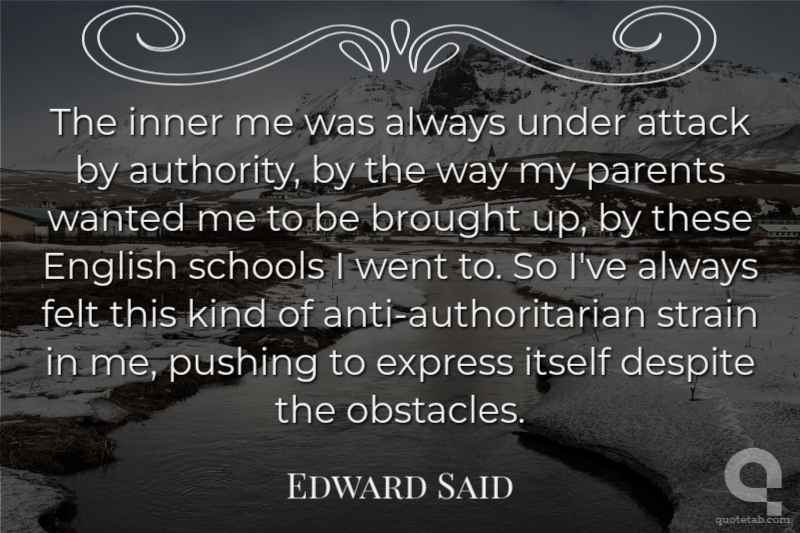 The inner me was always under attack by authority, by the way my parents wanted me to be brought up, by these English schools I went to. So I've always felt this kind of anti-authoritarian strain in me, pushing to express itself despite the obstacles.