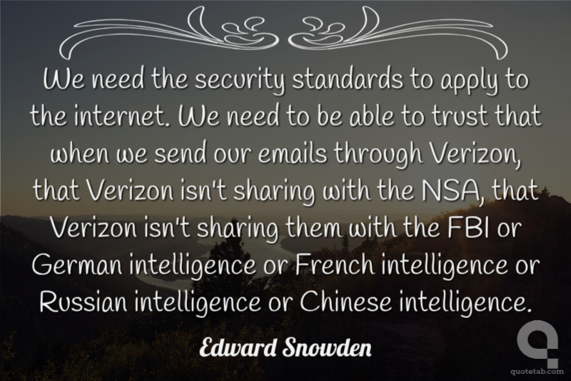 We need the security standards to apply to the internet. We need to be able to trust that when we send our emails through Verizon, that Verizon isn't sharing with the NSA, that Verizon isn't sharing them with the FBI or German intelligence or French intelligence or Russian intelligence or Chinese intelligence.