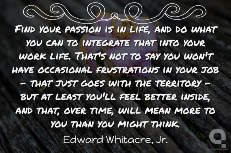Find your passion is in life, and do what you can to integrate that into your work life. That's not to say you won't have occasional frustrations in your job - that just goes with the territory - but at least you'll feel better inside, and that, over time, will mean more to you than you might think.