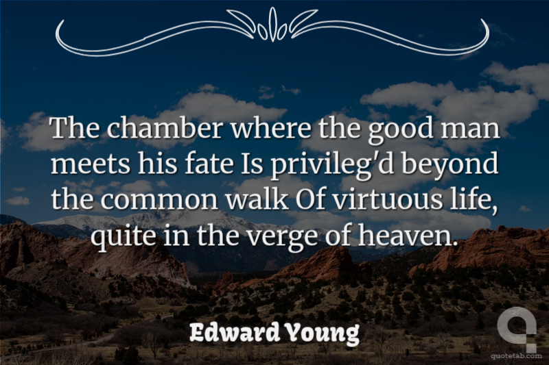 The chamber where the good man meets his fate Is privileg'd beyond the common walk Of virtuous life, quite in the verge of heaven.
