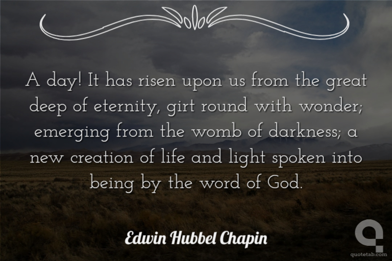 A day! It has risen upon us from the great deep of eternity, girt round with wonder; emerging from the womb of darkness; a new creation of life and light spoken into being by the word of God.