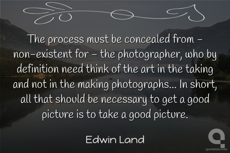 The process must be concealed from - non-existent for - the photographer, who by definition need think of the art in the taking and not in the making photographs... In short, all that should be necessary to get a good picture is to take a good picture.