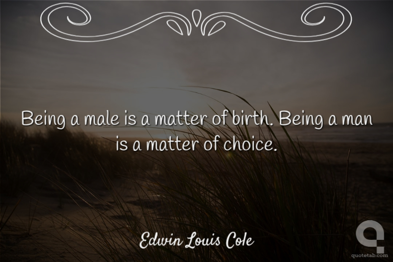 Being a male is a matter of birth. Being a man is a matter of choice.