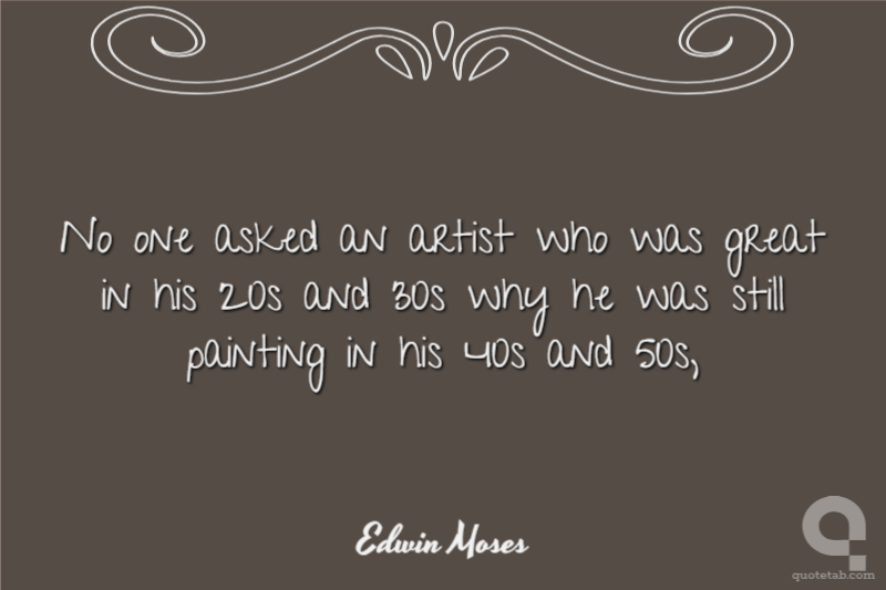 No one asked an artist who was great in his 20s and 30s why he was still painting in his 40s and 50s,