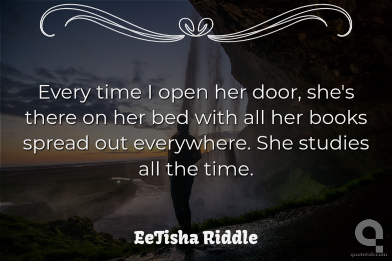 Every time I open her door, she's there on her bed with all her books spread out everywhere. She studies all the time.
