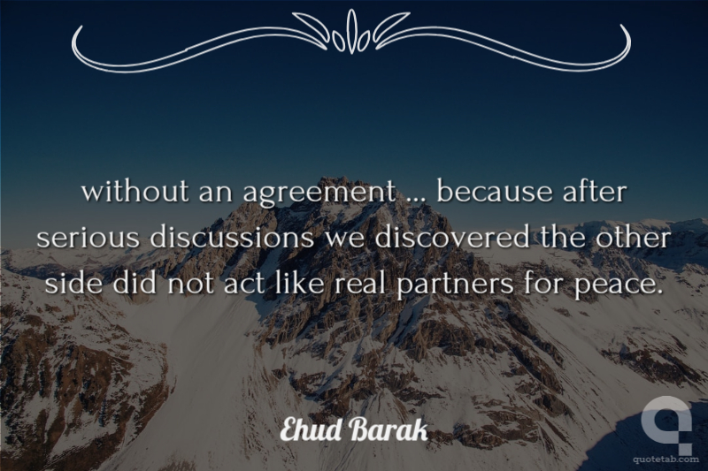 without an agreement ... because after serious discussions we discovered the other side did not act like real partners for peace.