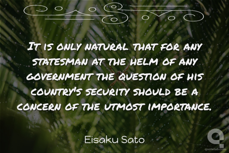 It is only natural that for any statesman at the helm of any government the question of his country's security should be a concern of the utmost importance.