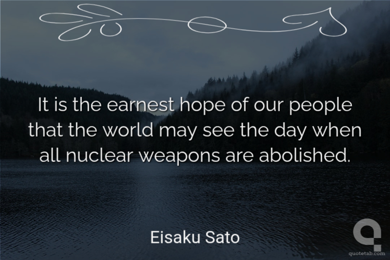 It is the earnest hope of our people that the world may see the day when all nuclear weapons are abolished.