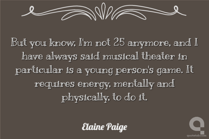 But you know, I'm not 25 anymore, and I have always said musical theater in particular is a young person's game. It requires energy, mentally and physically, to do it.