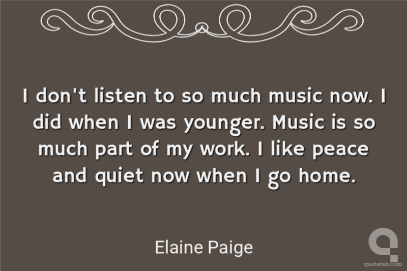 I don't listen to so much music now. I did when I was younger. Music is so much part of my work. I like peace and quiet now when I go home.