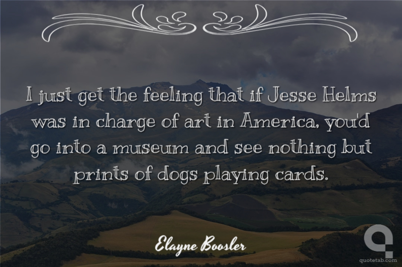 I just get the feeling that if Jesse Helms was in charge of art in America, you'd go into a museum and see nothing but prints of dogs playing cards.