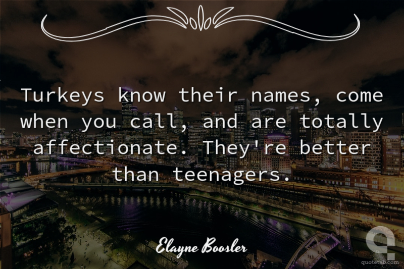 Turkeys know their names, come when you call, and are totally affectionate. They're better than teenagers.