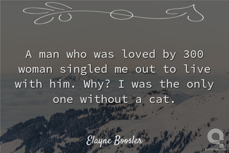 A man who was loved by 300 woman singled me out to live with him. Why? I was the only one without a cat.