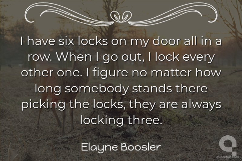 I have six locks on my door all in a row. When I go out, I lock every other one. I figure no matter how long somebody stands there picking the locks, they are always locking three.