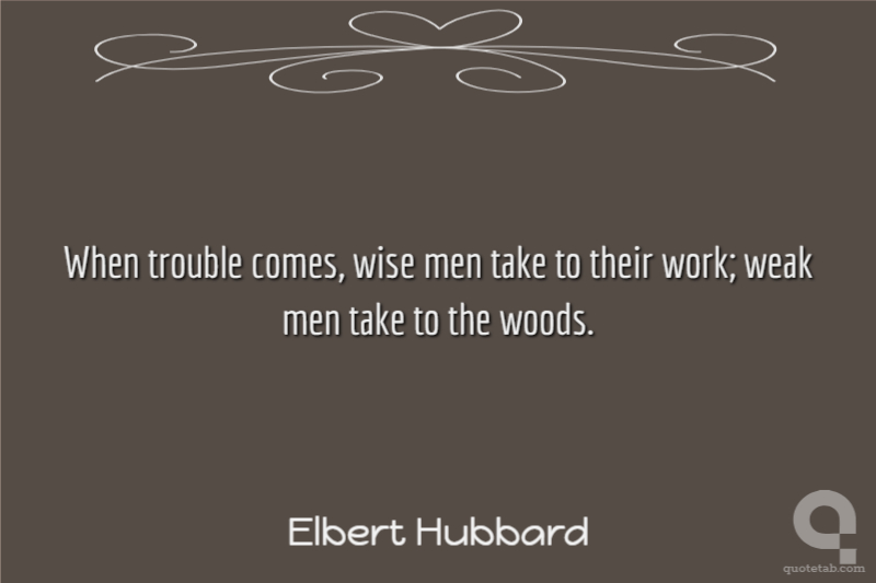 When trouble comes, wise men take to their work; weak men take to the woods.