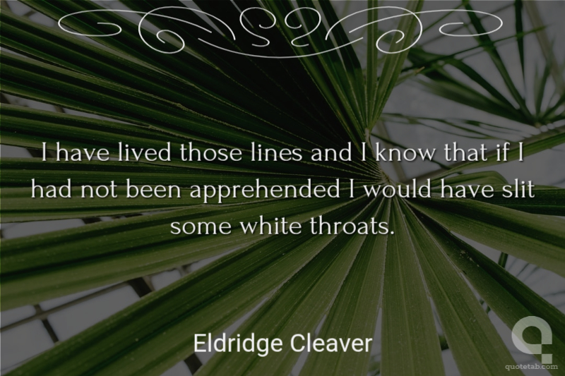 I have lived those lines and I know that if I had not been apprehended I would have slit some white throats.