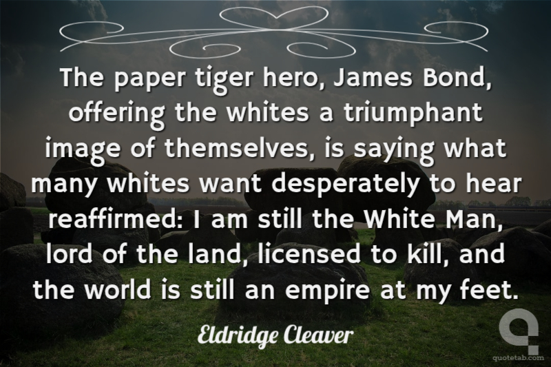 The paper tiger hero, James Bond, offering the whites a triumphant image of themselves, is saying what many whites want desperately to hear reaffirmed: I am still the White Man, lord of the land, licensed to kill, and the world is still an empire at my feet.